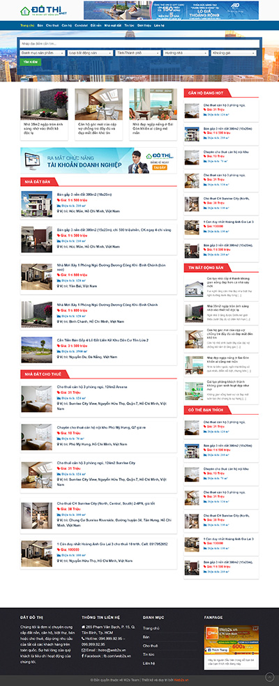 Website bao gồm các chức năng: Trang chủ, bán, cho thuê, căn hộ, condotel, đất nền, nhà mặt đất, tin tức, giới thiệu, liên hệ, tìm kiếm theo các tiêu chí
