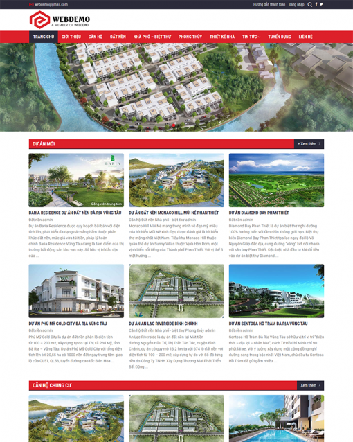 Website bao gồm các chức năng: Trang chủ, căn hộ, đất nền, nhà phố- biệt thự, phong thủy, thiết kế nhà, tuyển dụng, liên hệ, tin tức