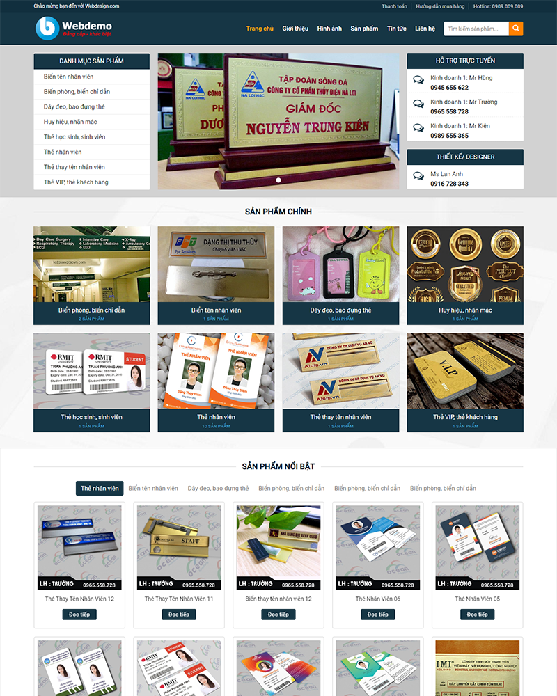 Website Biển chức danh bao gồm các tính năng: trang chủ, liên hệ, giới thiệu, hình ảnh, sản phẩm, tin tức, tìm kiếm, hướng dẫn, thanh tóan