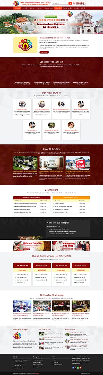 Website gồm các tính năng: trang chủ, giới thiệu, dịch vụ , khóa học, lịch khai giảng, giảng viên, tin tức – sự kiện, thư viện, liên hệ, tìm kiếm, chương trình đào tạo.